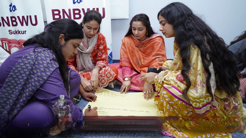 The Begum Nusrat Bhutto (BNB) Women University Sukkur was established with the sole objective to empower, facilitate and inspire Women with ambition. BNB Women University aims to enable capable women by providing quality education alongside exposure to endless opportunities for their socio-economic growth. Women's participation is essential in all professional fields including Education, Technology, Management, Engineering, Politics, and Legislation among others.