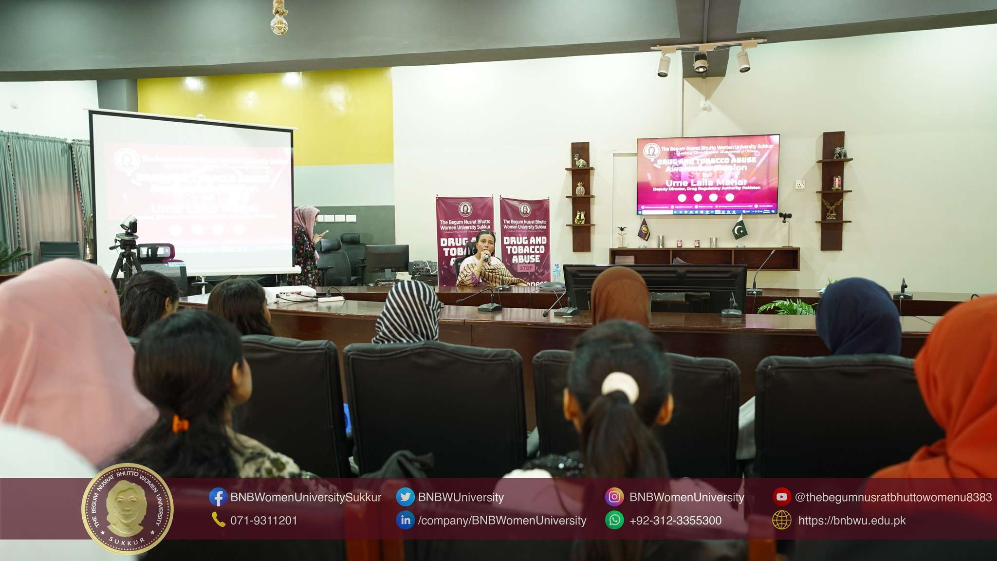 In line with the vision of Prof. Dr. Tehmina Nangraj, Vice Chancellor and Patron-in-Chief of Studentsโ Clubs and Societies, to equip young women with knowledge on pressing societal issues and empower them in all streams of life, the Studentsโ Clubs and Societies at Begum Nusrat Bhutto Women University Sukkur organized an awareness session on 26 June, 2025 to mark World Drug Day 2025.