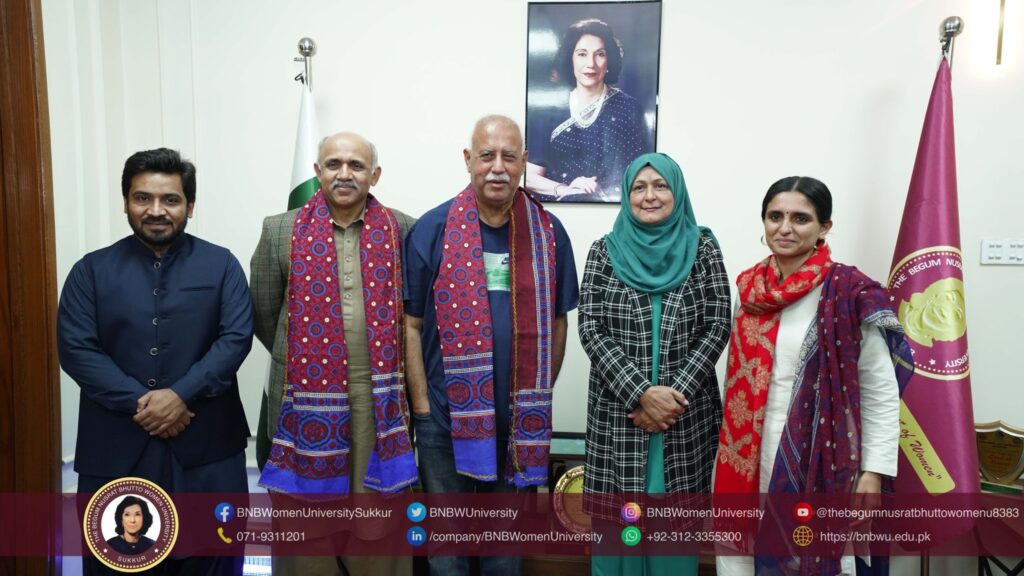 Mr. Wasatullah Khan appreciated the Universityโs progress and its contribution to womenโs education and community development in the region. The Vice Chancellor also briefed him on the expanding academic programs and institutional initiatives currently underway at BNBWU.