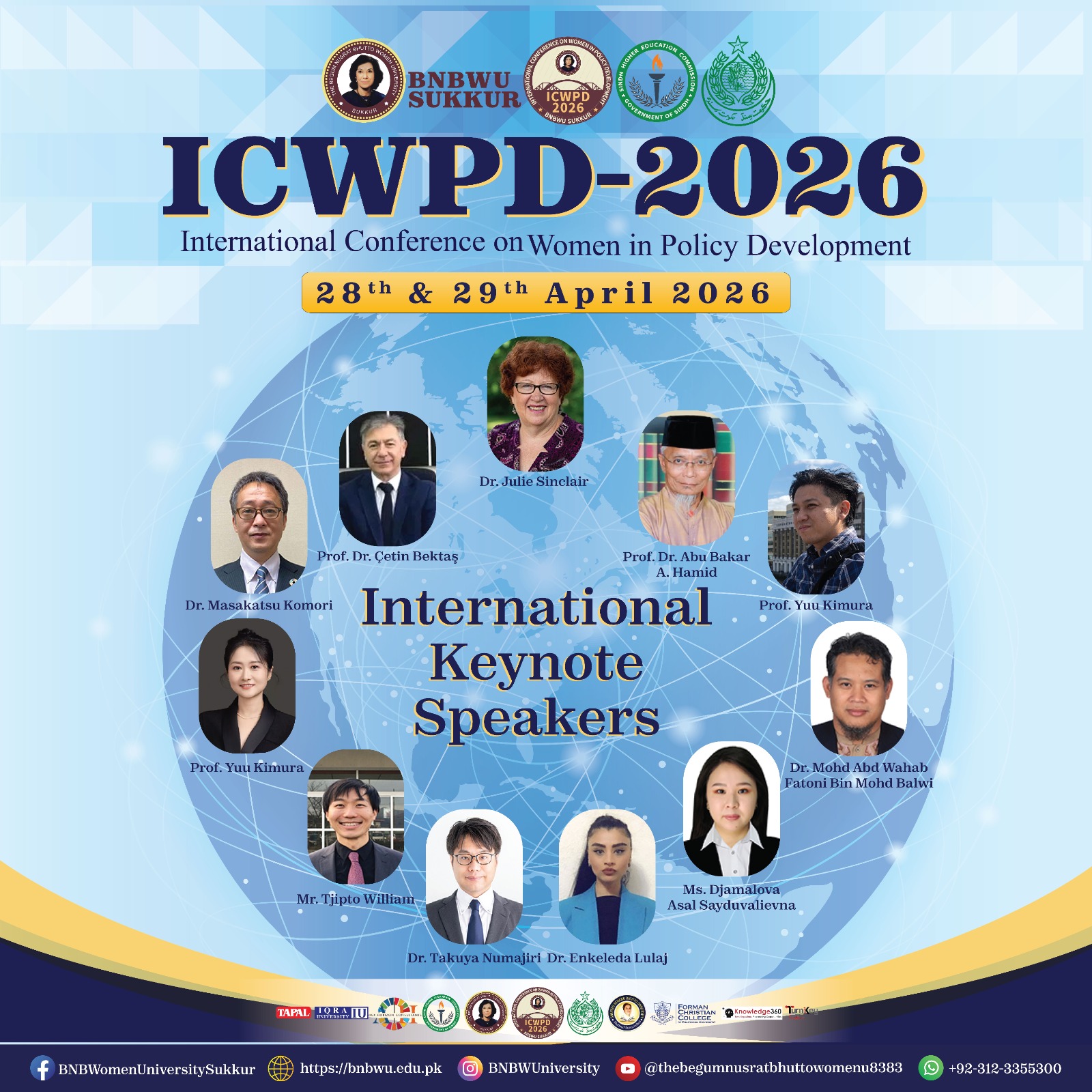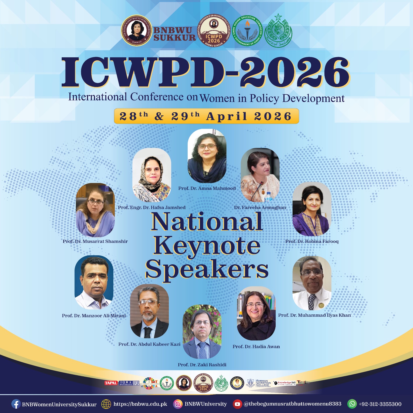 Under the leadership of Prof. Dr. Tehmina Mangan, Vice Chancellor of The Begum Nusrat Bhutto Women University, Sukkur, in partnership with IQRA University and the Sindh Higher Education Commission, is proud to announce the International Conference on Women Policy Development (ICWPD) 2026. This premier international conference serves as a global platform dedicated to “Empowering Youth & Advancing Gender Equity in Health and Economic Policy.”
